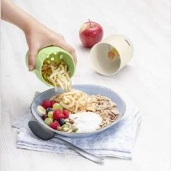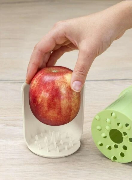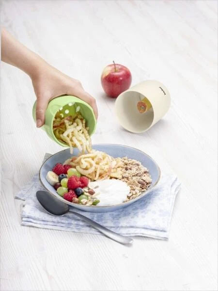 Betty Bossi Apfelreibe Apple Grater. Mit der innovativen Apfelreibe von Betty Bossi schnell zum fruchtigen Frühstücksmüsli. Apfel rein, drehen, fertig ist der geriebene Apfel und der Saft wird separat aufgefangen. Das alles ohne eine Verletzungsgefahr.