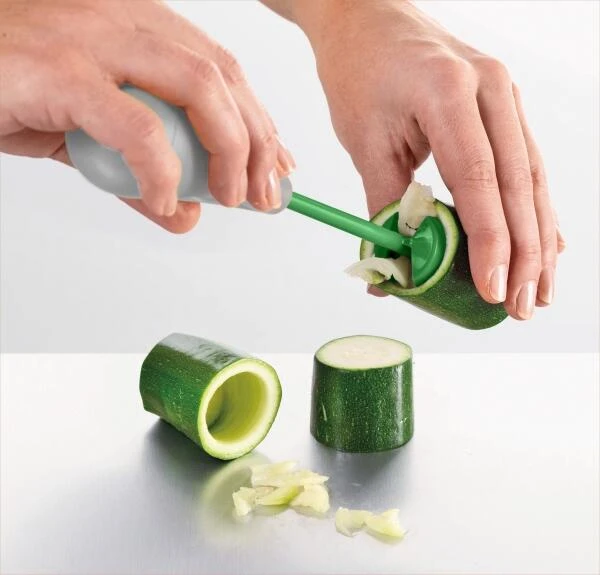 Gemüseschneider Veggie Drill. Idealer Küchnehelfer zum Aushöhlen von Obst und Gemüse. Einfach, schnell und platzsparend in der Anwendung. 4 Aufsätze mit unterschiedlichem Durchmesser.