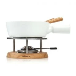 Dieses Fondue-Set aus der Serie Bianco von Boska macht aus jedem Gericht ein Festessen. Dank der Bodenplatte aus Eichenholz, dem integrierten Brenner und dem Fonduetopf aus Steingut lässt sich dieses Fondue-Set sogar täglich verwenden. Es schmeckt herrlich mit italienischen Kräutern, Schimmel- oder Ziegenkäse. Aber auch ein süßes Schokoladenfondue als Dessert kommt immer gut an.
