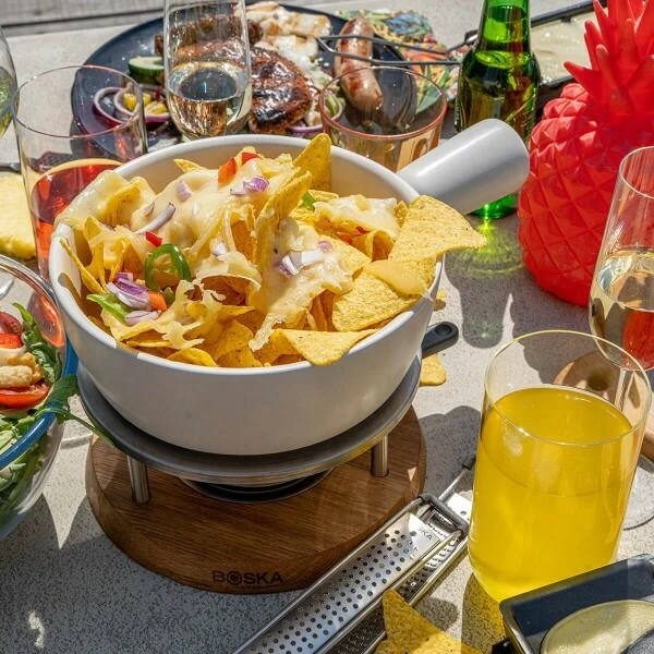 Für jede Geschmacksrichtung eine Idee, hier kommt jeder auf seine Kosten! Und das gilt auch für Form und Stil, denn Boska bietet ein umfassendes Programm an Käsefondue-Sets. Stilvoll in schwarz und aus Gusseisen oder aus hochwertiger Keramik in verschiedenen Farben. Für jede Gelegenheit und Gesellschaft das passende Käsefondue-Set.