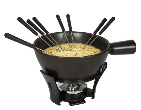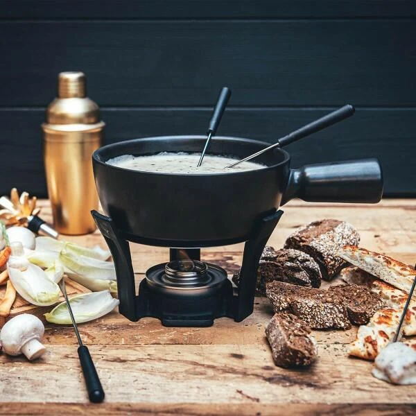 Boska Käsefondue-Set Nero L. Das klassisches Käsefondue-Set in der XL-Ausführung! Mit einem Fonduetopf aus Steingut mit 1,5 Liter Fassungsvermögen und 8 Fonduegabeln.