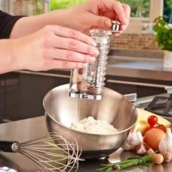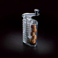 Die Muskatmühle überzeugt durch ihr neues Design aus Acryl und Verchromung. Sie verfügt über eine außergewöhnliche Reibefläche für harte Nüsse. Die Klinge mit Wellenschliff erzielt beste Mahlergebnisse. Zudem fällt dank des einzigartigen ‘Hub- und Ausgabe’-Systems die nächste Muskatnuss an die richtige Stelle. In der Mühle können bis zu 6 Muskatnüsse aufbewahrt werden.