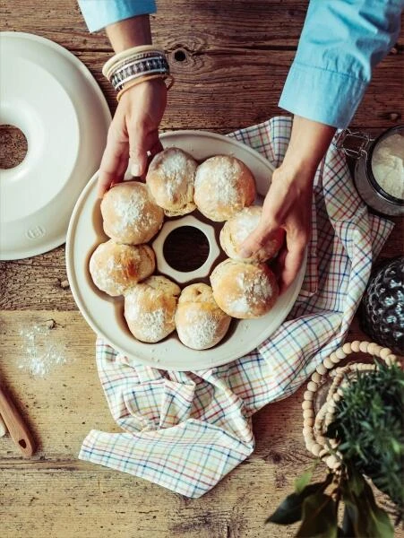 Mit dieser Brotkranz-Backform wird die Vorstellung zur Realität, acht leckere Brötchen können formschön und gelingsicher auf einmal gebacken werden.