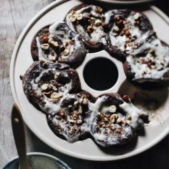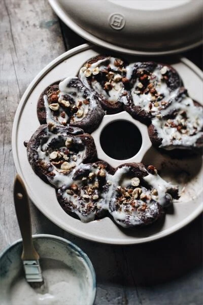 Emile Henry Brotkranz-Backform rund in fusain. Die Brotkranz-Backform ermöglicht es, 8 luftige und knackige Brötchen zu backen.