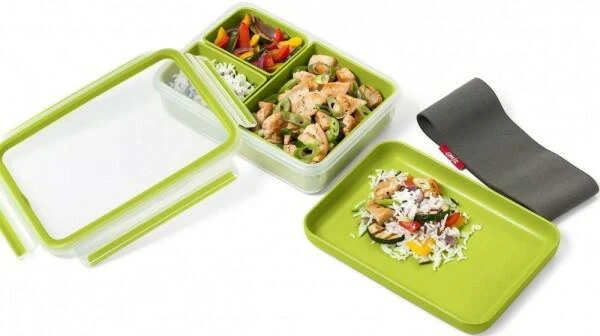 Die Lunchboxen und Frischhaltemöglichkeiten von Emsa passen sich Ihrem Alltag an. Dank vielfältiger Größen und unterschiedlicher Einsätze, lassen sich Speisen einfach frisch halten und separat mitnehmen. Die Lunchbox aus der Clip & Go Serie kommt mit 3 Einsätzen, einem separaten Teller zum Essen und einem Gummi-einband.