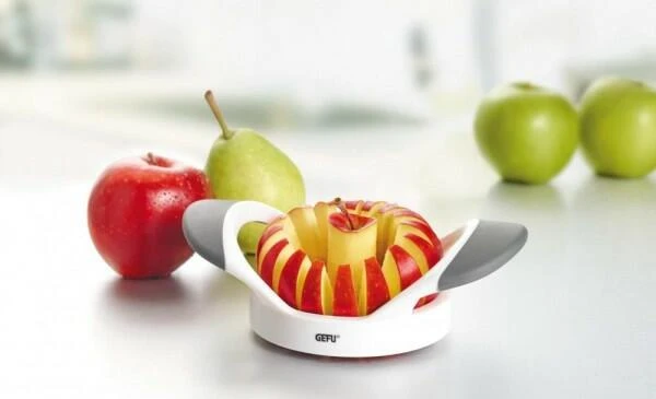 GEFU Apfelteiler Parti. In einem Arbeitsschritt zerteilt der Apfelteiler Äpfel und Birnen in 16 appetitliche Spalten.