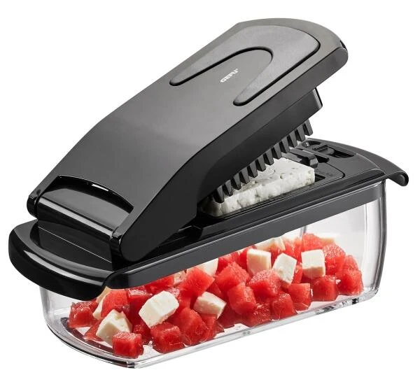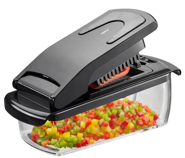 GEFU Würfel- und Stifteschneider TREPPO. Schneller und bequemer kann man Obst und Gemüse nicht in bunte Würfel und vielseitig verwendbare Stifte verwandeln.