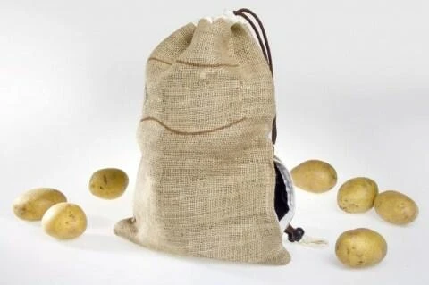 Aufbewahrungsbeutel für Kartoffeln. Jutebeutel mit Zugband zum luftigen und lichtgeschützten Lagern von Kartoffeln.