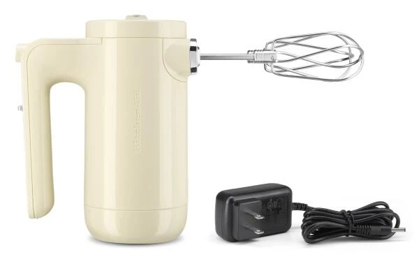 KitchenAid Kabelloses Handrührgerät creme. Kompaktes, kabelloses Handrührgerät mit sieben Geschwindigkeitsstufen, aufladbarem Lithium-Ionen-Akku und aufrechter Standfunktion.