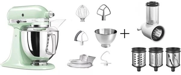 KitchenAid Küchenmaschine ARTISAN 175PS in pistazie mit Gemüseschneider. Die neue KitchenAid Artisan Küchenmaschine 5KSM175PS ist das Premiummodell der Artisan Küchenmaschine und die perfekte Kochhilfe für eine Vielzahl von Aufgaben. Ausgestattet mit einer erweiterten Auswahl an Zubehör.