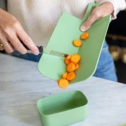 koziol faltbares Schneidebrett SNAP in grün. Das Schneidebrett mit praktischer Klappfunktion zum sicheren Schütten macht Schneiden, Kochen und Braten einfacher. Das Brett kommt in 2 Größen: in S besonders handlich für Kräuter, Zwiebeln und kleine Mengen Gemüse, bei der größeren Variante L rutschen an der mittigen Falz auch größere Stückchen Richtung Topf.