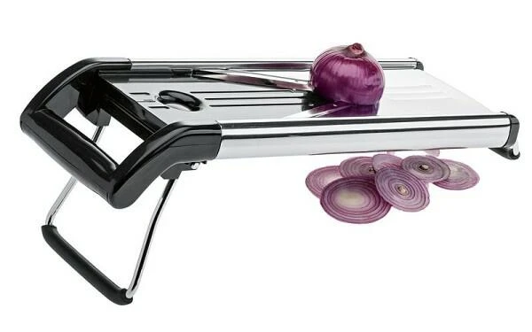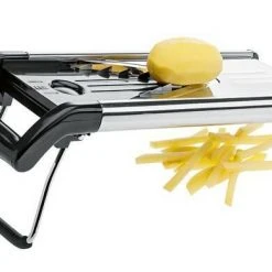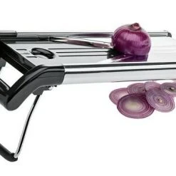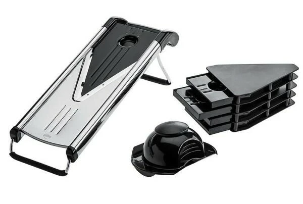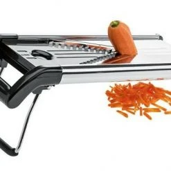 - inkl. 5 Schneideinsätze für Scheiben: (1,5 mm / 2,5 mm / 3,5 mm) und Streifen: (3,5 mm / 7,5 mm)