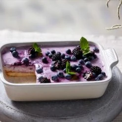 Der Teig wird in der Auflaufform aus Steinzeug gleichmäßig durchgebacken und von allen Seiten goldbraun und knusprig. Die praktischen Seitengriffe erleichtern die Handhabung.