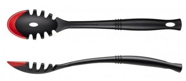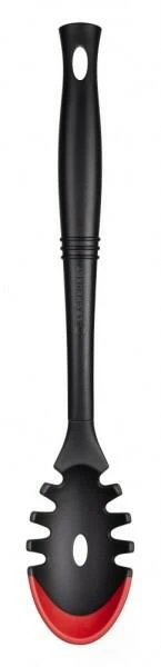Le Creuset Pastalöffel. Hergestellt aus glasfaserverstärktem Kunststoff mit hochwertigem Silikoneinsatz. Ideal zum Portionieren von kurzen und langen Pastasorten.