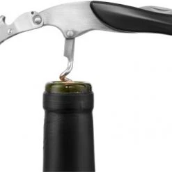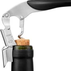 Gehört zur Grundausstattung: Hochwertiger Korkenzieher für zuhause und unterwegs. Das Kellnermesser arbeitet mit patentiertem 2-Step-System. Step one: Aufklappen, Spirale eindrehen, oberen Teil aufsetzen, eindrücken und den Korken zur Hälfte heraushebeln. Step two: den Griff absenken, unteren Teil aufsetzen und den Korken komplett ziehen. Mit der Push-Funktion wird außerdem ein Abrutschen vom Flaschenrand verhindert. Ein unentbehrliches Utensil sowohl für Zuhause als auch für die spontane Verkostung unterwegs.