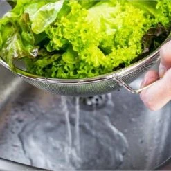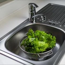 Standsieb aus hochwertigem Edelstahl Es gibt Dinge, die in keiner Küche fehlen dürfen. Ein Sieb gehört zweifelsohne dazu. Gerade, wenn viele Handgriffe auf einmal getätigt werden müssen, ist das LURCH Standsieb ein nützlicher Helfer. Salat, Obst oder Gemüse können Sie ganz bequem darin waschen. Dank des stabilen Sockels, stellen Sie es einfach in die Spüle und lassen das Wasser ganz von alleine ablaufen. So sparen Sie Zeit und Mühe. Die beidseitigen Griffe ermöglichen ein sicheres Transportieren und schützen Ihre Hände zusätzlich vor heißem Inhalt. So ist das Sieb ideal zum Abgießen von Wasser nach dem Kochen von Nudeln, Reis, Kartoffeln oder Gemüse. Es eignet sich hervorragend zum Passieren von Früchten und filtert z.B. bei Beeren oder Orangen unerwünschte Kerne oder Fruchtfleisch. Dabei können Sie es bequem auf einer Schüssel oder Topf abstellen. Es erfasst somit auch größere Mengen, wenn Sie den Inhalt von Konservendosen von Flüssigkeiten trennen möchten. Viele Anwendungsmöglichkeiten Beim Backen ist das Edelstahlsieb ein nützlicher Helfer, wenn es um gleichmäßiges Bestäuben von Gebäck von Kakao und Puderzucker geht. Beim Auftauen von Lebensmitteln bietet es den Vorteil, dass das Auftaugut direkt auf dem Sieb liegt und nicht mehr mit der Auftauflüssigkeit in Verbindung kommt.