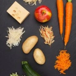 Microplane Extragrob-Reibe Professional schneidet dickere Streifen und eignet sich besonders für alles Grobe wie weichen Käse, Früchte und Gemüse, so wie Äpfel, Zwiebel, Kohl und Kartoffeln.