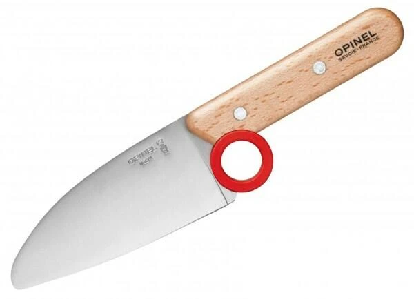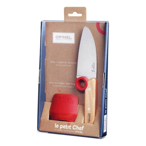 Opinel Kinderkochset Le petit Chef, 2-teilig. Das Set für kleine Meisterköche besteht aus einem Messer mit abgerundeter Klingenspitze und einem Fingerschutz, der Verletzungen beim Arbeiten vorbeugt.