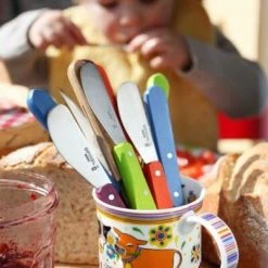 Kindermesser mit einem Griff aus Buchenholz rot. Mit einem roten Heft aus Buchenholz wartet dieses Kindermesser des französischen Herstellers