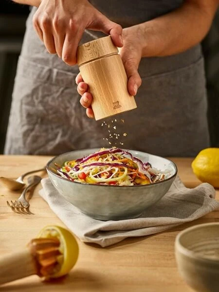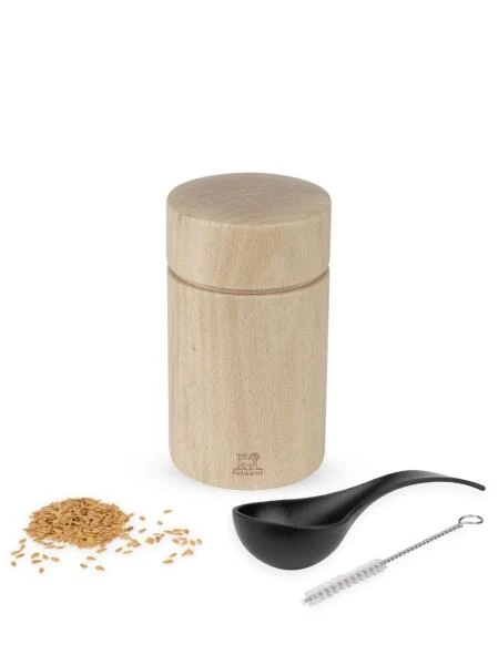 Um die Vorzüge der Samen genießen zu können, bietet Peugeot die manuelle Mühle Naka aus Holz an, deren patentiertes Mahlwerk speziell zum Mahlen von Lein- und Sesamsamen vorgesehen ist, da es sich an ihre Konsistenz und Härte anpasst. Das einfach und sehr schnell komplett ausbaubare Mahlwerk lässt sich gut reinigen. Diese Mühle mit abnehmbarer Kappe erlaubt ein schnelles Nachfüllen. Der beiliegende Dosierlöffel gestattet das Zumessen von 10 Gramm Leinsamen.