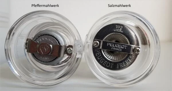 - Keine Verwechslungsgefahr: helles Mahlwerk: Salz, dunkles Mahlwerk: Pfeffer