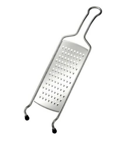 Die Reiben stehen auf rutschfesten Silikonfüßen oder hängen sich mit ihren gekröpften Füßen sicher an Schüsselrändern ein. Der Drahtgriff ist nach ergonomischen Bedürfnissen geformt und zugleich Aufhängemöglichkeit für das Rösle Aufhängesystem “Offene Küche”.