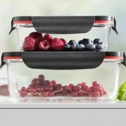 Ob zuhause oder unterwegs, Reste oder Extra-Portionen: In der kleinen, mittleren und größeren Version lassen sich die Lebensmittel nicht nur einfach stapeln und transportieren, sondern auch hygienisch und geschmacksneutral im Kühl- und Gefrierschrank aufbewahren oder ohne Deckel im Backofen und in der Mikrowelle erhitzen. Der Verschlussmechanismus ist einfach zu bedienen und hält jede Schale besonders dicht.