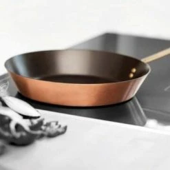 Mit seinen unübertroffenen Eigenschaften erfüllt Kupfer alle Voraussetzungen, die sich Hobby- und Profiköche wünschen. Die Wärmeleitfähigkeit von Kupfer ist 25-fach höher als bei Edelstahl und 9-fach höher als bei Aluminium. Durch die hohe Wärmeleitfähigkeit verringert sich die Kochzeit, die Wärme kann genau dosiert werden. Speisen können auf den Punkt genau zubereitet werden. Dadurch bleiben Vitamine und Geschmack erhalten, Energie wird eingespart. Reinigen Sie die Pfanne mit heißem Wasser, unter Zuhilfenahme eines Spülschwamms oder einer Bürste. Vermeiden Sie die Reinigung in der Spülmaschine, denn dies schadet der Antihaftwirkung der Pfanne und auch den Brateigenschaften aufgrund der massiven Laugenwirkung.