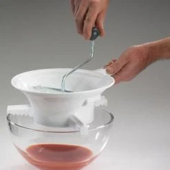 Diese Maschine für Hobby-Köche eignet sich mitunter für die frische Zubereitung von Pürees, Soßen und Babynahrung. Sie kann sowohl zum feinen als auch zum groben Passieren dank der zwei auswechselbaren Lochscheiben verwendet werden. Ausgestattet ist dieser Küchenhelfer weiterhin mit drei Auflagearmen für einen festen Halt auf größeren sowie kleineren Behältnissen.