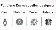 - Herdarten: geeignet für Gas, Elektro, Ceran, Halogen