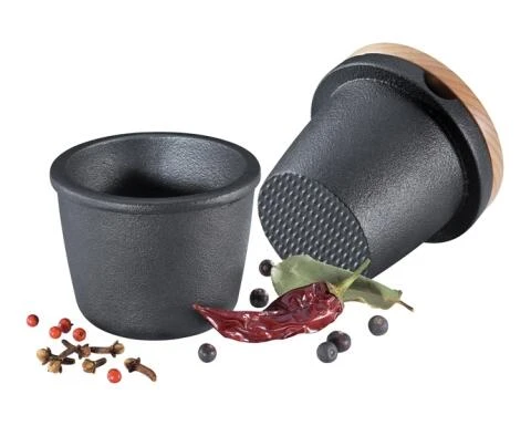 Sie mögen Ihre Pfefferkörner grob und die Muskatnuss fein? Mit der Zassenhaus Gewürzreibe entscheiden Sie selbst über das Ergebnis. Je nachdem wie stark Sie drücken und drehen, können Sie das Mahlergebnis variieren. Dafür befüllen Sie einfach die Schale und üben Sie mit dem Mahlkonus Druck auf Kräuter und Gewürze aus. Das Produkt besteht aus massivem Gusseisen und liegt aufgrund seines beachtlichen Gewichts von 1 kg gut in der Hand. Der Schaleninnenboden und der Mahlkonus sind geriffelt, so zerreiben Sie Pfeffer- und Salzkörner, Koriandersamen und auch ölhaltige Lebensmittel schnell und gleichmäßig. Falls von Ihrem Mahlgut etwas übrig bleiben sollte, können Sie es in den Mahlkonus mit dicht schließendem Deckel aus Buchenholz geben. Darin sind Ihre Gewürze lichtgeschützt und aromasicher aufgehoben.