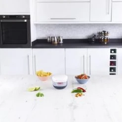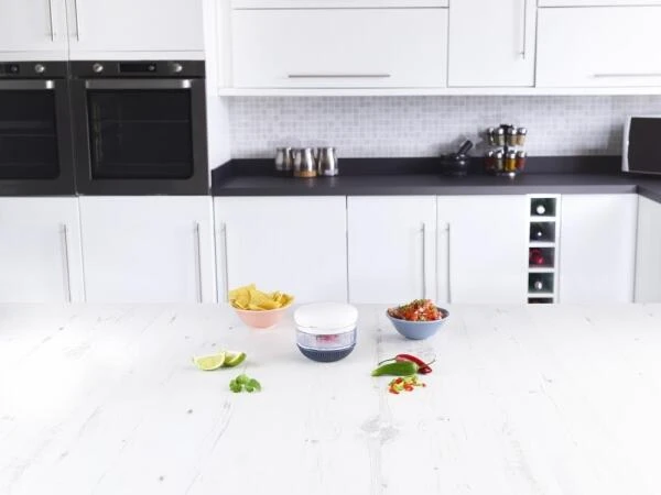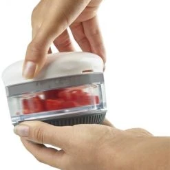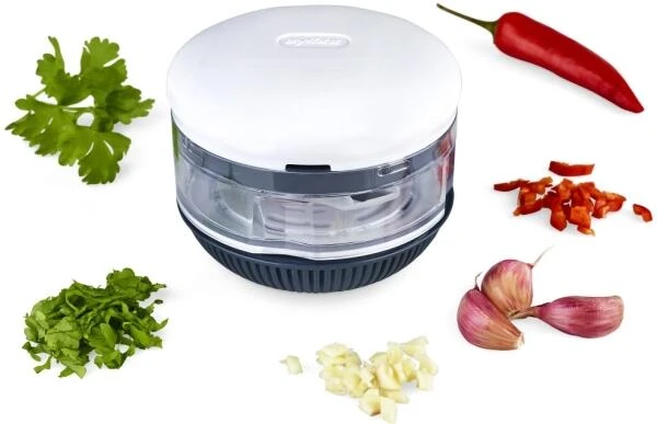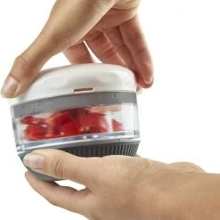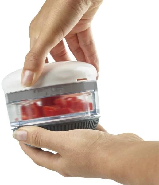 Der Zyliss Twist & Roll Mini Blitzhacker wurde speziell für kleine Lebensmittel wie Knoblauch, Schalotten, Chilis, Ingwer, Kräuter und viele mehr entwickelt. Die doppelseitigen Klingen werden durch das Rollen des griffigen Kunststoffbodens auf einer Arbeitsfläche oder per Drehen per Hand aktiviert. Er ermöglicht dem Anwender die totale Kontrolle über die Ergebnisse: Rollen Sie einfach länger, um feinere Ergebnisse zu erzielen und kürzer für gröbere.